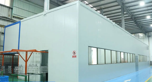 工厂设有锌压铸,铝压铸,注塑,钣金冲压,机加工,表面涂装,密封条制造,集成总装等一系列自动化生产车间。利用自动化、数字化、智能化等先进制造系统,引进激光切割机、自动喷涂线、机器人焊机、数控折弯机、机器人打砂机等智能化设备。全力实现设备高端化、生产智能化、产业规模化。
