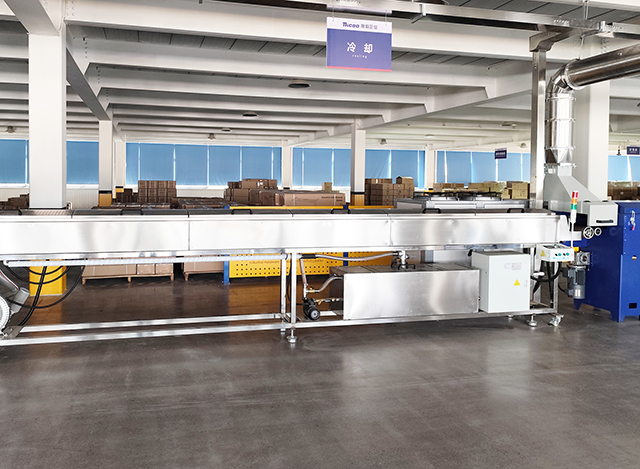 硫化是橡胶制品性能提升的重要环节。斯科密封条采用微波硫化+热空气硫化线对成型后的橡胶制品进行循环连续加热处理,实现更优的加热均匀性与更高的硫化质量。随后,冷却水槽快速降温定型,并通过风机去除表面水分,确保产品外观整洁且性能稳定。